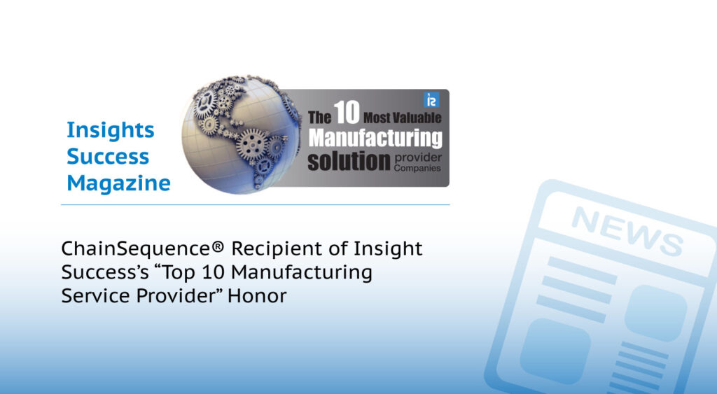 ChainSequence Recipient of “Top 10 Manufacturing Service Provider” ChainSequence Recipient of “Top 10 Manufacturing Service Provider” Learn More